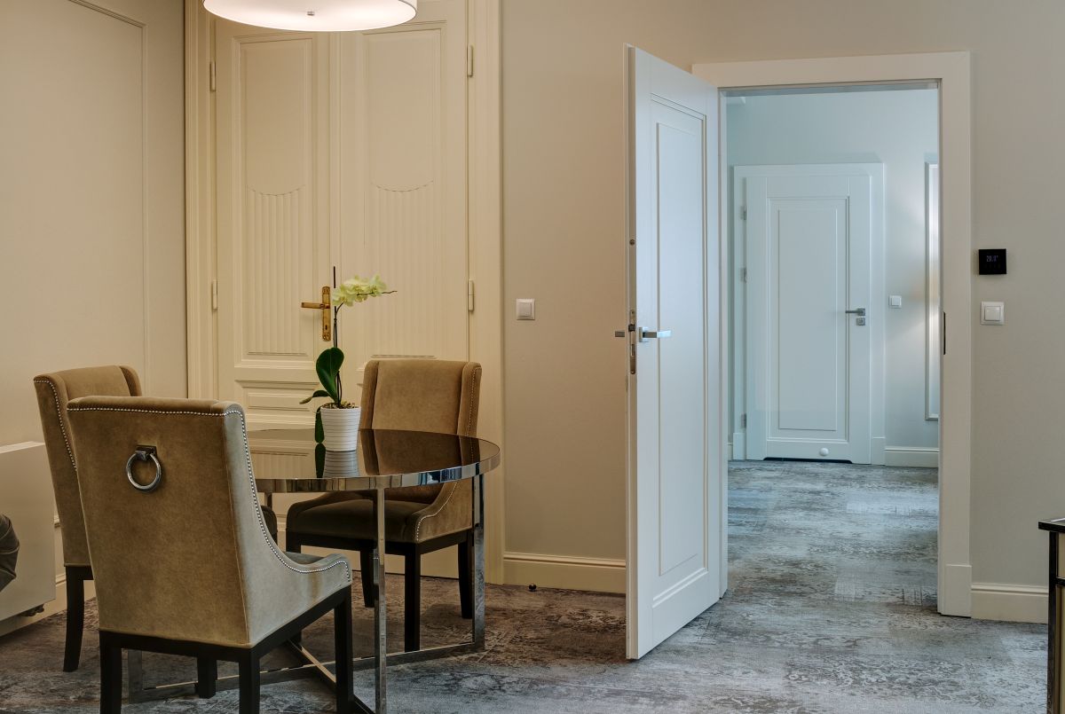 Linia linea to propozycja dla klientów którzy poszukują eleganckich ale jednocześnie prostych drzwi. Wpuszczane listwy mocujące szkło lub płyciny, oraz wzór płycin nawiązują do tradycyjnej stolarki drzwiowej, którą można podziwiać w wielu dworach i rezydencjach.